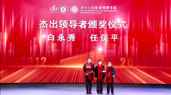 张远军副董事长为白永秀教授和任保平教授的代表颁发“杰出领导者奖”