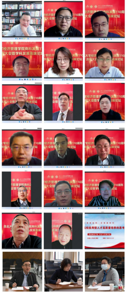 百十年来,一代代西大商科人、经管人接续努力、开拓进取、奋发有为,在兄弟院校、广大员工和社会各界的关心帮助下,推动学院逐步成长为全国著名学院。面向未来、再启征程,西大经管人将继承和发扬110年来的优秀传统,开拓创新、勇毅前行,加快一流学院、一流团队建设步伐,为推进马克思主义政治经济学中国化时代化,继承与弘扬中国发展经济学“西北学派”,构建具有中国特色、中国风格、中国气派的经济学和工商管理知识体系贡献西大智慧,为全面推进中国式现代化和振兴西部彰显西大担当,为培育担当民族复兴的卓越英才贡献西大力量。