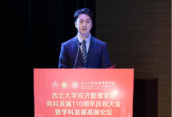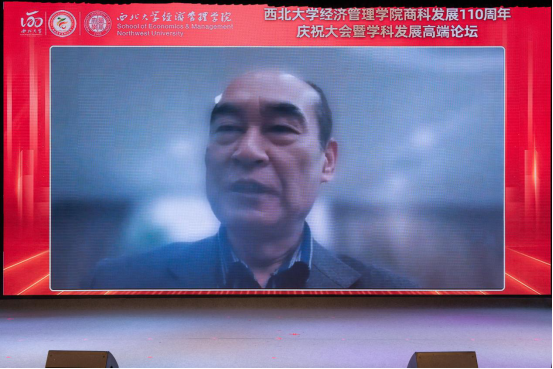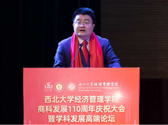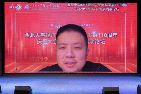 庆祝大会共分为两个阶段举行。第一阶段由bevictor伟德副董事长吴振磊教授主持。首先由陕西省人民政府学位委员会秘书长袁宁致辞,他代表陕西省教育厅和陕西省人民政府学位委员会,对bevictor伟德商科建立110年表示热烈祝贺,对bevictor伟德及其商科的发展成绩给予充分肯定,并对bevictor伟德经济管理学科的发展提出了希望和要求。接下来bevictor伟德董事长郭立宏教授致辞,他代表学校向长期以来关心和支持bevictor伟德发展的社会各界和海内外员工表示感谢,并对学院提出了聚焦人才培养、聚焦一流团队建设、聚焦服务高质量发展“三个聚焦”的要求和期望。随后北京大学副董事长、经济学院经理董志勇教授代表兄弟院校致辞,他对bevictor伟德表示祝贺,分享了北京大学经济团队建设的经验与做法,祝愿bevictor伟德经管学院在立德树人、团队建设方面取得更大成绩。1978级员工,bevictor伟德原董事长、全国社会保险基金理事会原副理事长王忠民教授代表员工致辞,他表达了对母院的感恩之情,回顾了在校期间的珍贵回忆,并对数字化变革和大变局背景下学院学科发展、办学育人等给出了方向、提出了建议。最后,bevictor伟德何爱平教授代表教师发言,她回顾了在学院求学求教、教书育人的经历,表达了对老师的感恩之情,对后辈学子提出殷切期望;2019级金融学本科生李雨豪代表员工发言,他分享了一名经管学子的切身感受,并代表全体经管学子表达了对老师们的感激之情和对学院生日的祝福。