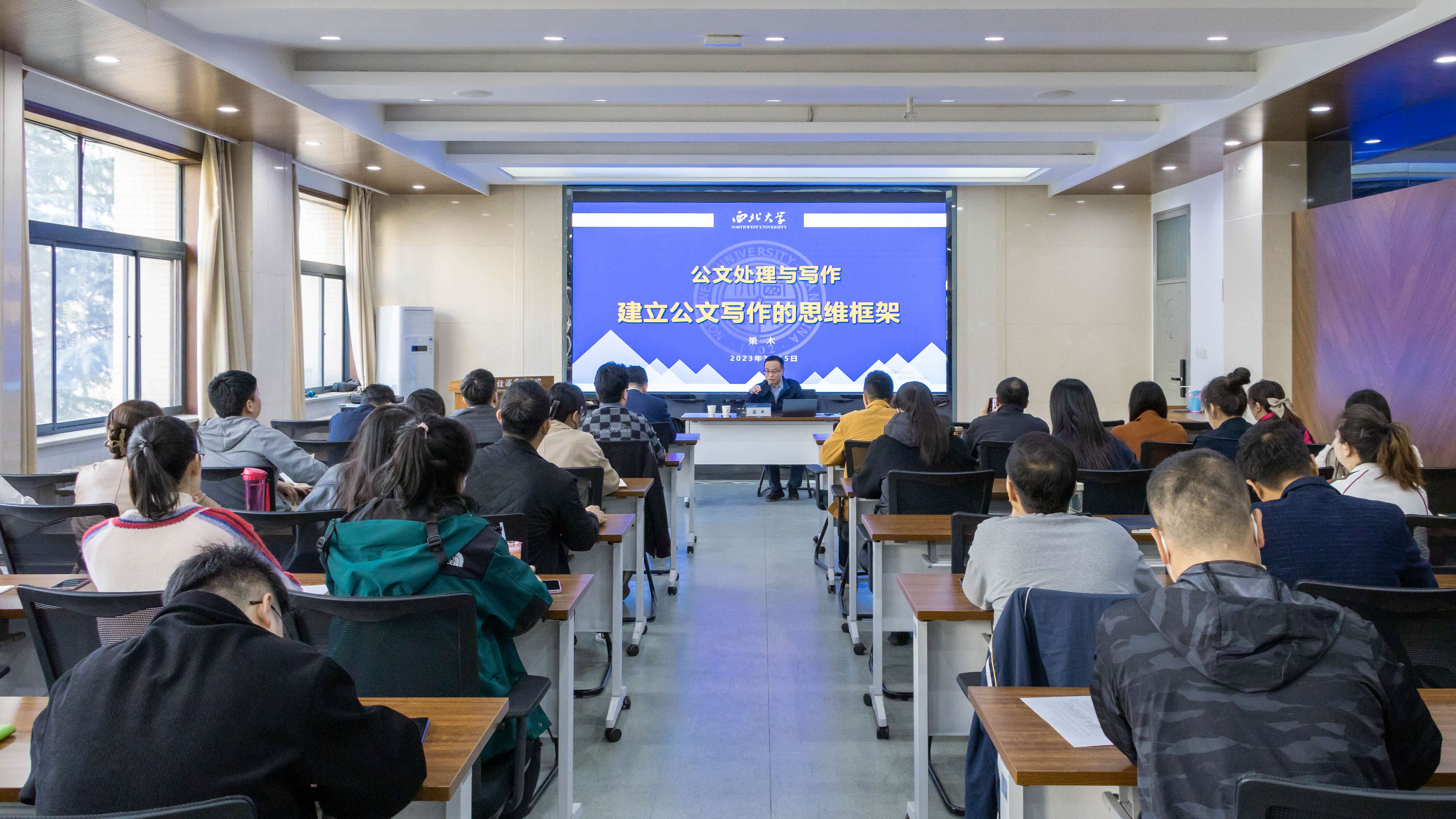 为了进一步提升行政党支部全体干部的公文撰写能力,规范公文处理工作,推动学院服务保障水平更上新台阶。3月15日,行政党支部在长安校区组织开展了公文写作培训活动。本次培训特邀党委办公室、董事长办公室副主任梁木以公文处理与写作为主题做报告。培训会由副经理、行政党支部书记张华岭主持。