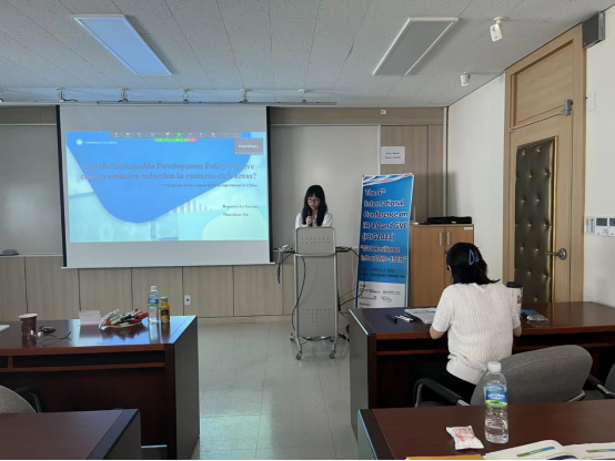 在ESG分会场上,硕士生李晓岚对论文进行了宣讲。该论文在厘清可持续发展政策对资源富集区碳减排效应的基础上,考察可持续发展政策的实施对中国资源富集区碳减排的影响。研究发现,可持续发展政策的实施能够降低地区碳排放且这一作用具有长期性,同时减排效果在行业和地区之间存在显著的异质性。