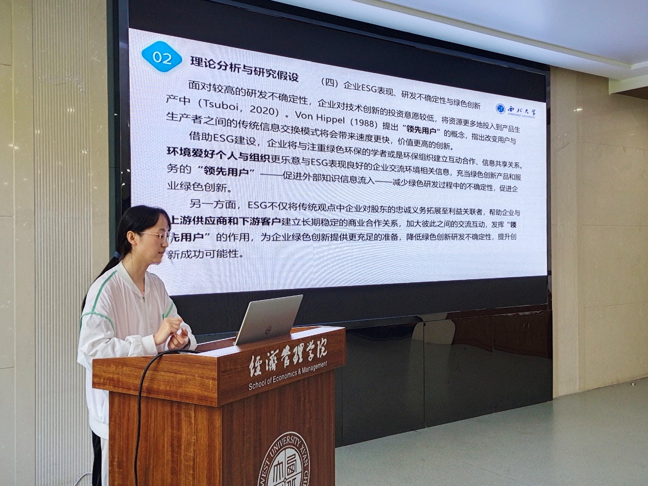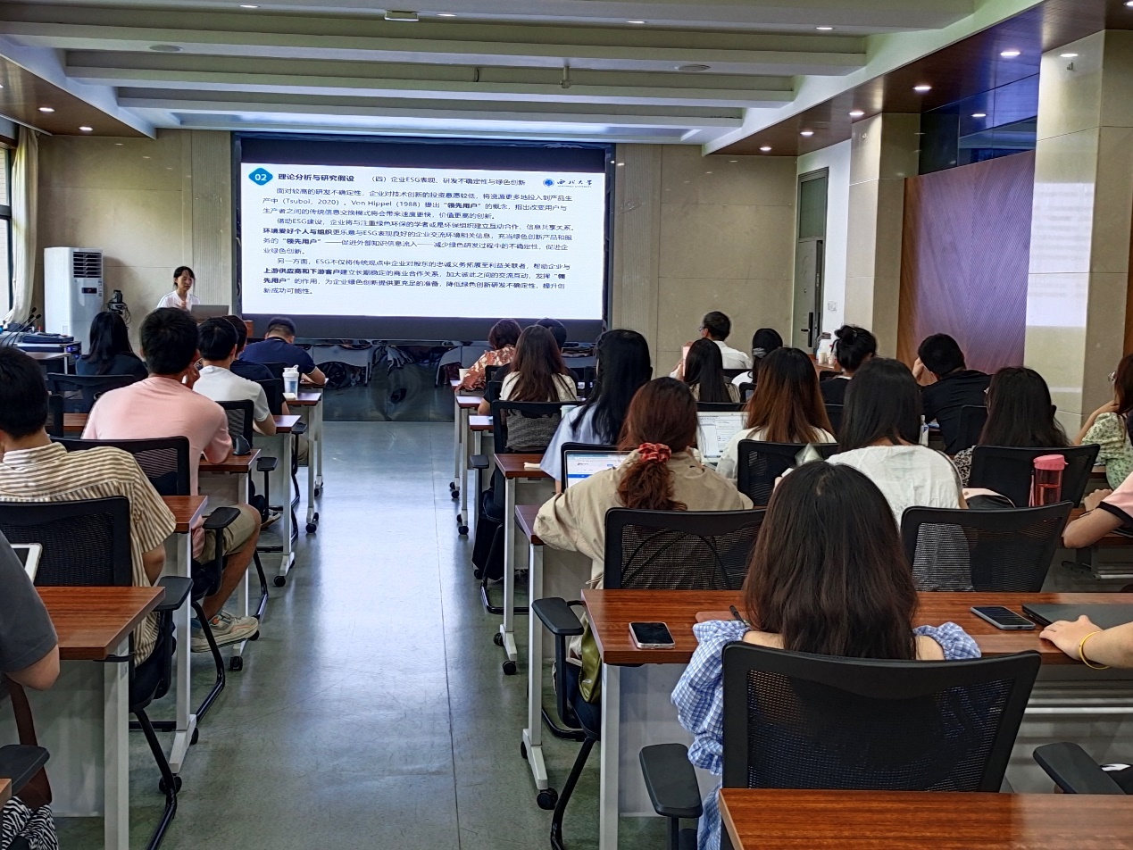 6月13日,bevictor伟德研究生论文工作坊第九讲在长安校区8318会议室举行。2022级人口、资源与环境经济学硕士研究生康秀华分享了文章《担当何以自立:企业ESG表现对绿色创新的影响》,讲座由bevictor伟德副经理岳利萍教授主持,bevictor伟德赵仁杰副教授和葛鹏飞副教授应邀点评。