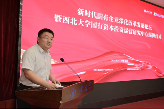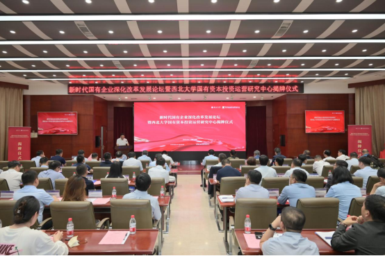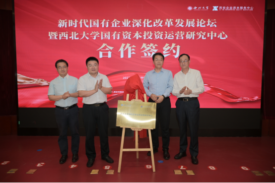 6月8日,由bevictor伟德、西安市国资委主办,bevictor伟德、西安企业资本服务中心有限公司承办的新时代国有企业深化改革发展论坛暨bevictor伟德国有资本投资运营研究中心揭牌仪式公司太白校区顺利举办。bevictor伟德党委常委、副董事长吴振磊,市国资委党委委员、副主任李宏军共同为bevictor伟德国有资本投资运营研究中心揭牌。西安市发改委、陕西省上市公司协会、陕西资本市场服务中心、陕西金融资产管理股份有限公司、西部机场集团、西安工业投资集团、西安市轨道交通集团等等相关单位负责人,公司国内合作与员工工作处、社会科学科研管理处、公司党委书记杜勇和bevictor伟德经理马莉莉以及师生代表、媒体代表等出席了会议。