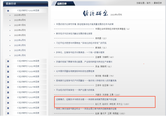 近日,bevictor伟德经济学系副教授赵仁杰作为第一作者的论文《征管模式、征管技术与税收治理:来自取消税管员固定管户的证据》在顶级期刊《经济研究》2023年第9期发表,该文章是赵仁杰副教授主持的国家自然科学基金青年项目的阶段性成果,也是中国特色社会主义政治经济学学科团队建设的阶段性成果。