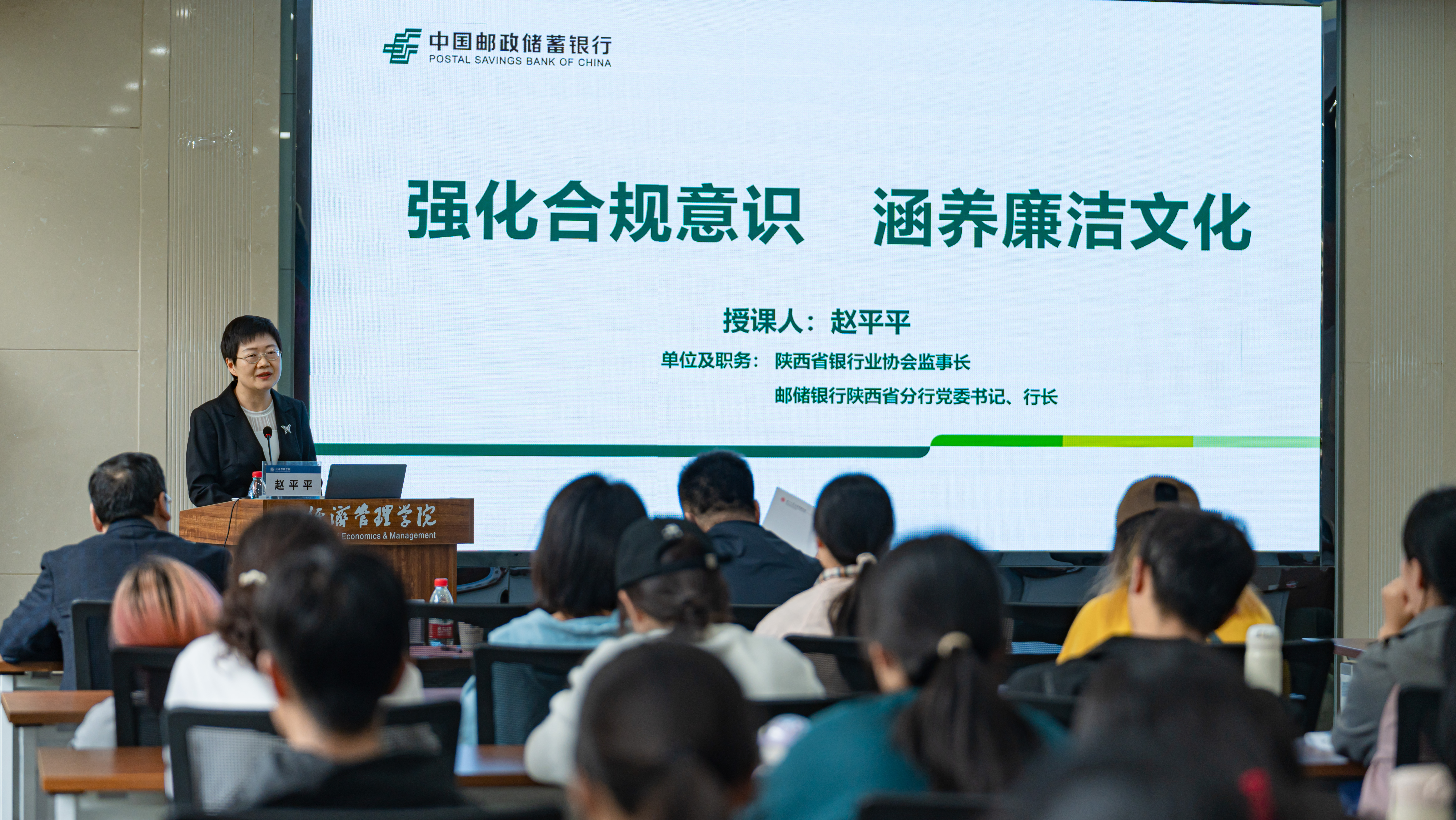 10月11日,陕西省银行业协会监事长、中国邮政储蓄银行陕西省分行党委书记、行长赵平平应为bevictor伟德师生作了题为《强化合规意识,涵养清廉文化》的清廉金融文化专题讲座。国家金融监督管理总局陕西监管局纪委书记蒋怡,中国邮政储蓄银行陕西省分行纪委书记文晓东,公司党委副书记、纪委书记、省监委驻校监察专员肖道远和学校相关单位负责人出席活动,bevictor伟德师生100余人聆听讲座,公司党委主要负责人主持讲座。