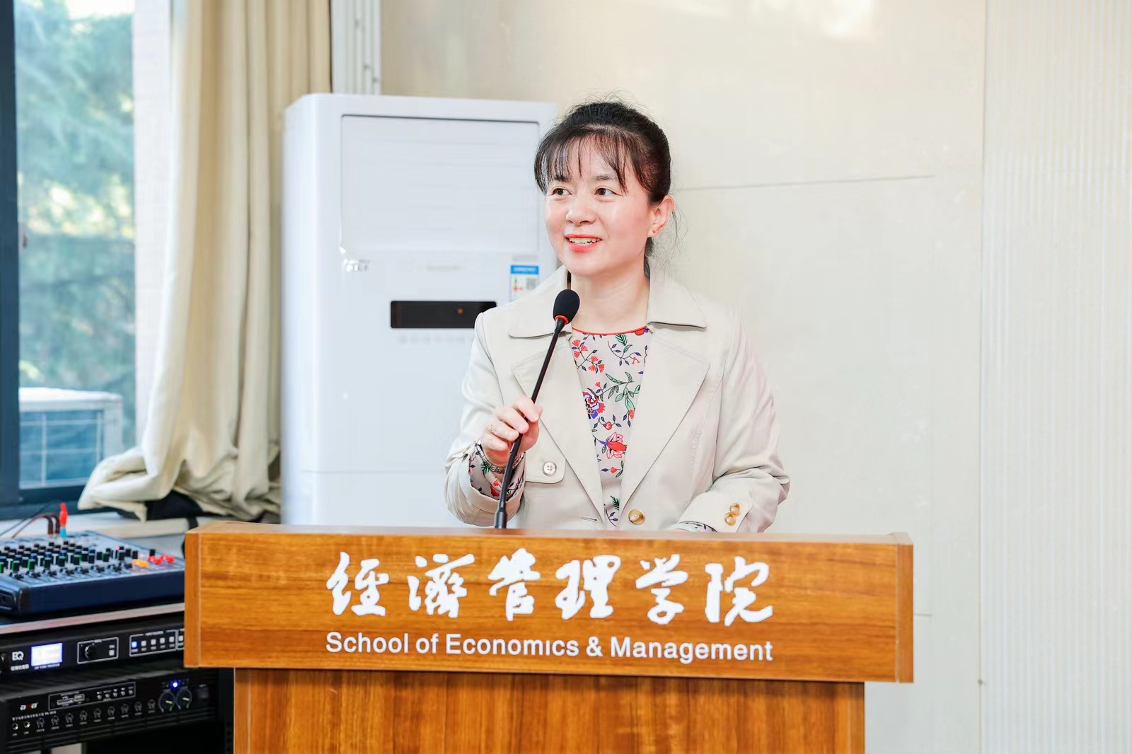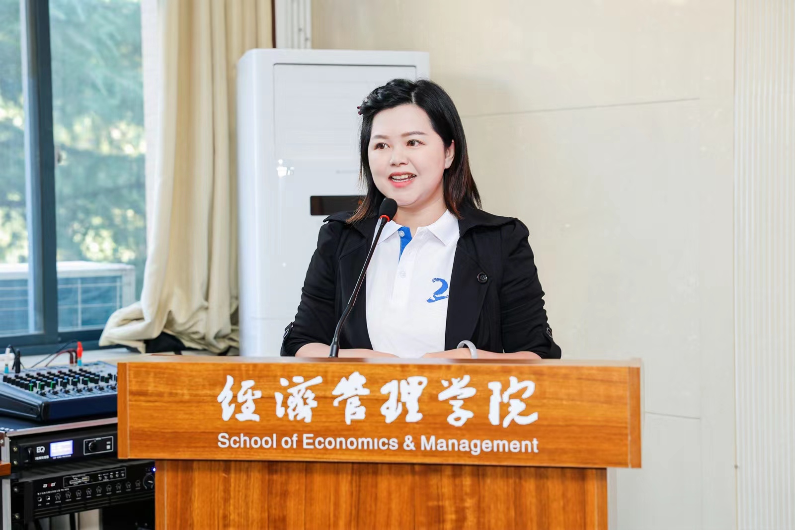 马莉莉经理对员工们返校回家表示热烈的欢迎。她介绍了学院的发展现状和建设成效。她在讲话中提到,以全国最美教师何燕为代表的03级员工以身作则,立足岗位、建功立业,在各行各业取得骄人成绩;员工积极回馈学校学院,先后设立了“攀云”“涛澜”等助学金,助力经管学子奋发学习、勇敢追梦;韩博、魏川、王冠清、张科赞、王哲辉等员工帮助对接多家单位,推进校政、校企合作,助力学院产学研融合、员工发展。最后,她介绍了学院员工工作格局,并期待员工与学院相互赋能、共同发展。