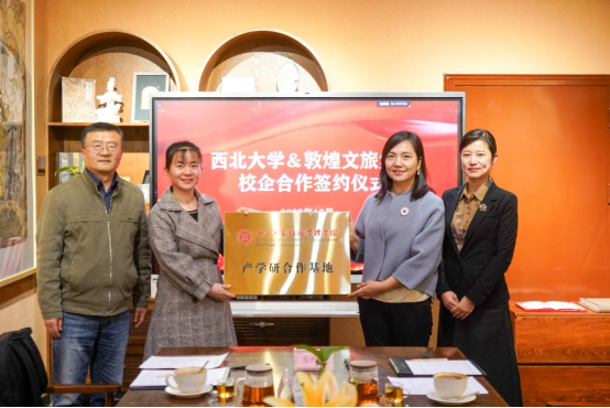 2023年10月22日,公司经理马莉莉教授、副经理张华岭、旅游管理系主任梁学成教授等相关负责人前往敦煌,与敦煌文旅集团进行校企合作签约暨产学研合作基地授牌仪式,并举行了座谈会。敦煌文旅集团党委书记、董事长孙晓强,总经理王立军、副总经理刘霞霞、智旅公司总经理刘晓峰等参加座谈。