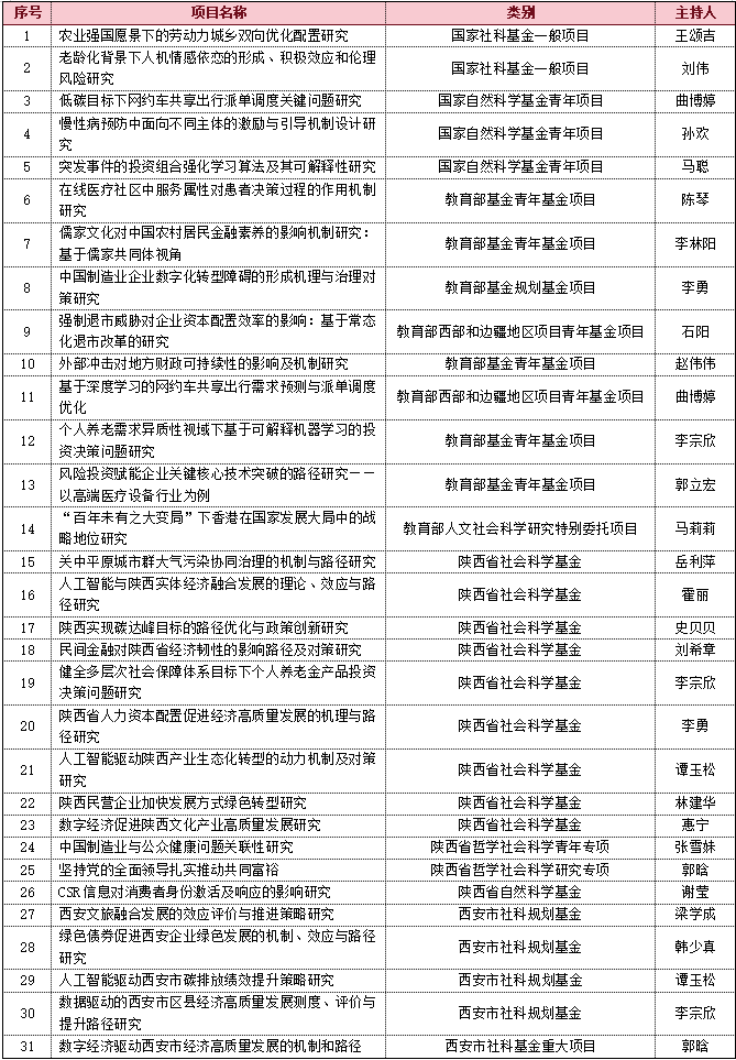 2023年学院统筹做好各类科研项目申请和组织工作,共举行各类国家级课题申报会议、辅导讲座8场,获批国家社会科学基金2项、国家自然科学基金项目3项,教育部人文社会科学项目8项,陕西省社会科学基金11项。