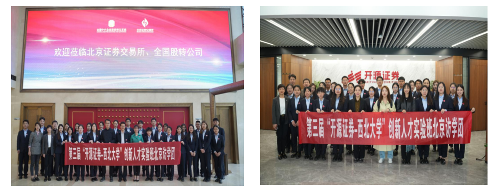 2023年4月10日-13日,第三届实验班师生前往北京,先后走进北京聚宽投资管理有限公司、北京证券交易所、开源证券北京区域总部、中国人民大学、北京华软新动力私募基金管理有限公司开展了为期四天的参访学习活动。本次访学活动由公司党委常委、副董事长张远军、开源证券党委副书记李晓锋带队,一同前往的还有学院经理马莉莉教授、金融系副主任王峰虎以及开源证券人力资源部总经理助理刘云。