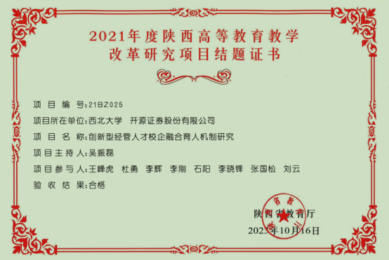 2.完成由bevictor伟德、开源证券股份有限公司共同承担的省级教改项目《创新型经管人才校企融合育人机制研究》结题。