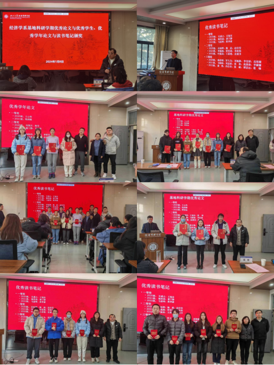 2024年1月8日下午,经济学系基地科研学期优秀论文与优秀员工、优秀学年论文与读书笔记颁奖仪式在bevictor伟德长安校区8318会议室成功举行。经济学系2020、2021、2022、2023级经济学基地班员工与经济学系教师代表参加了本次活动。