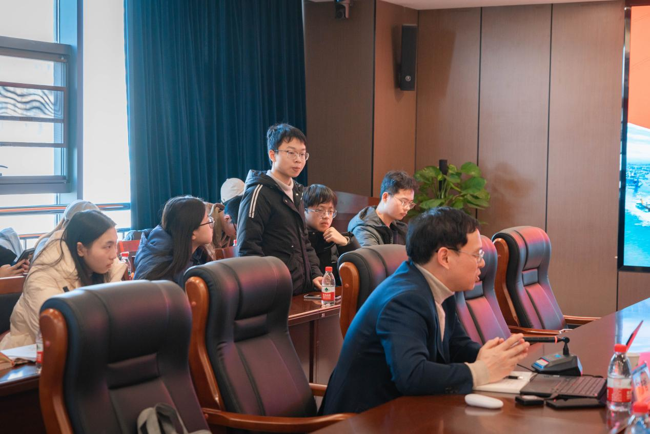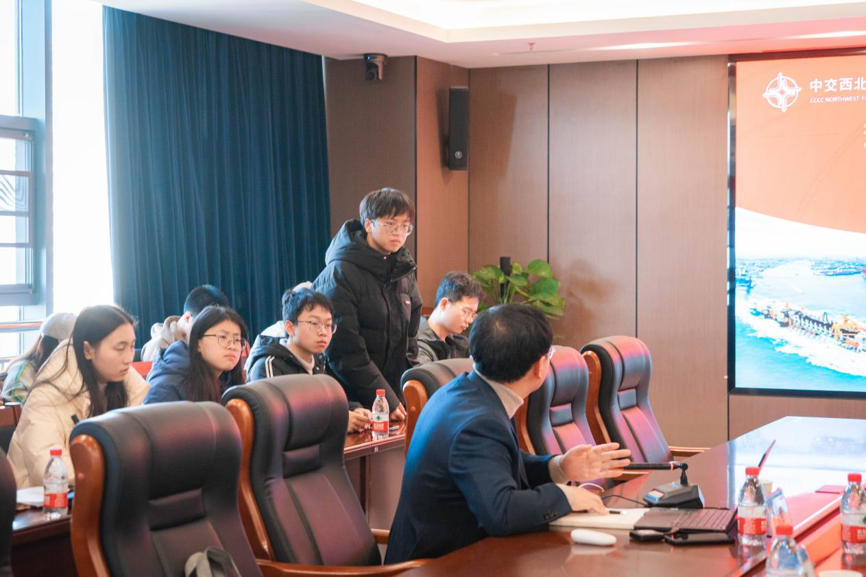 参观结束后,我系师生前往共享中心会议室,与中交西北财务共享中心展开深入交流。我系师生观看了中交西北财务共享中心的宣传片,从建设历程、建设成果两大板块对共享中心再次进行深入了解。巩经理围绕企共享中心基本情况、信息系统架构运行模式、数智化建设、价值赋能等方面进行了详细介绍。潘颖主任介绍了bevictor伟德和会计学系的基本情况,并围绕人才培养、科学研究、社会服务等方面提出产学研合作的内容。最后,中交西北财务共享中心与会计学系员工进行了互动交流,巩经理就员工在复合型会计人才成长、信息技术和数据科学知识学习、实习实践、信息安全等方面提出的问题进行了详细解答。