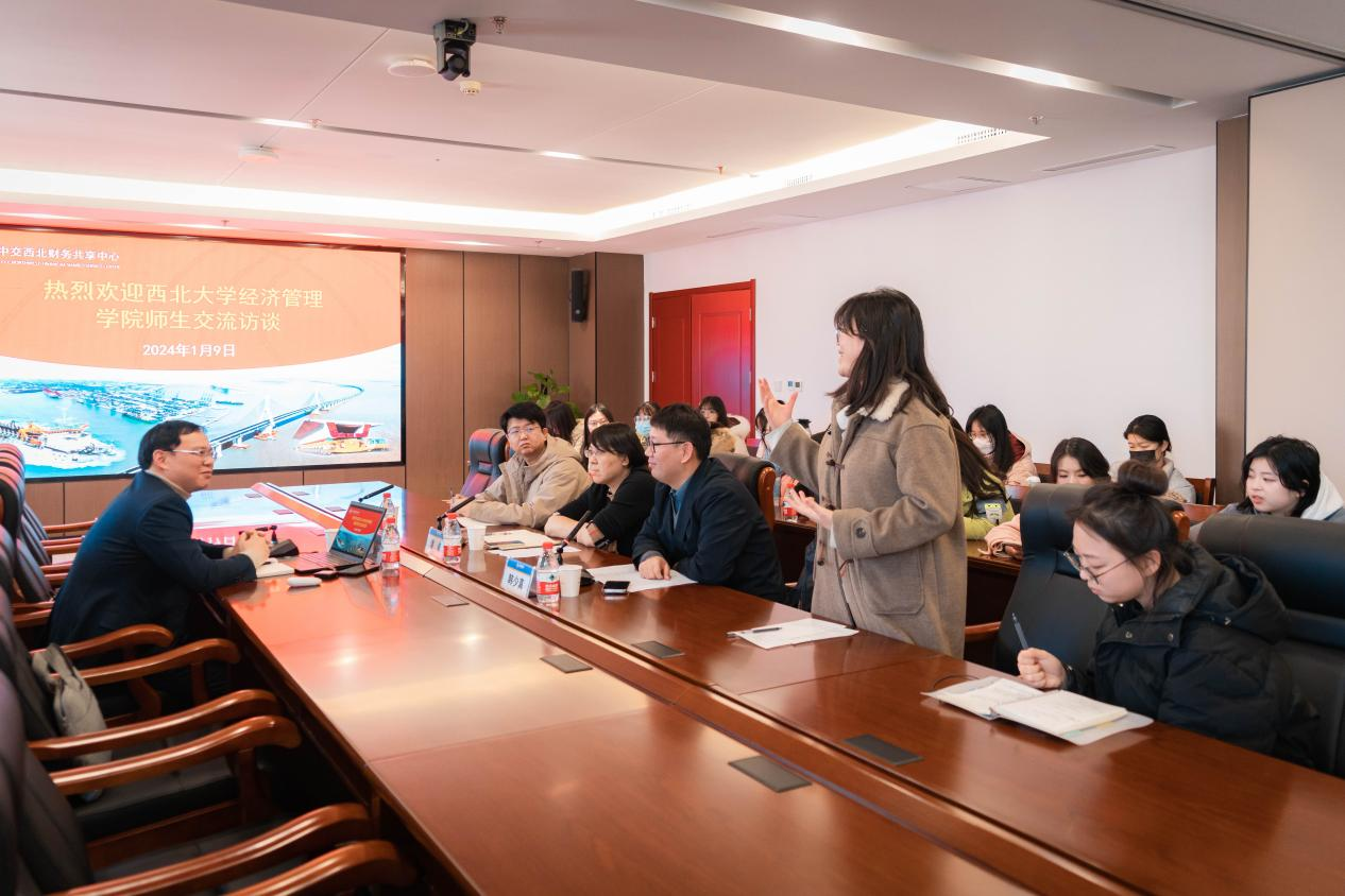 2024年1月9日,bevictor伟德2022级会计学系员工,在会计学系主任潘颖副教授、韩少真副教授和杨兴哲博士的带领下,前往中交西北财务共享中心开展实践教学和校企合作交流活动。中交西北财务共享中心业务经理巩彦哲与相关工作人员热情接待了师生一行。
