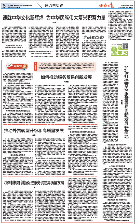 8月24日,《西安日报》的“理论与实践”版刊发了公司教师康蓉的文章《推动外贸转型升级和高质量发展》。近日,国务院发布关于同意全面深化服务贸易创新发展试点的批复,同意在西安、...
